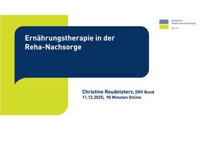 - Moderation: Diplom-Oecotrophologin Christine Reudelsterz, DRV Bund, Bereich Interdisziplinäre Zusammenarbeit
